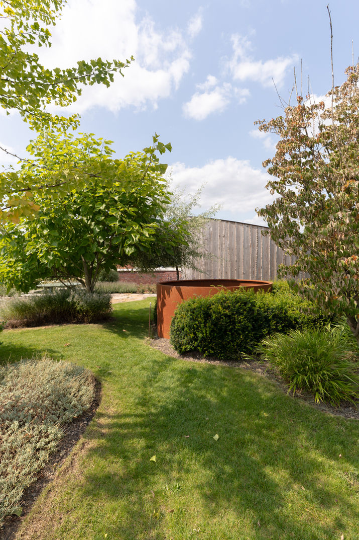 Integratie van het wonen in de bedrijfsactiviteit met kantoren en een unieke daktuin als buitentoonzaal.