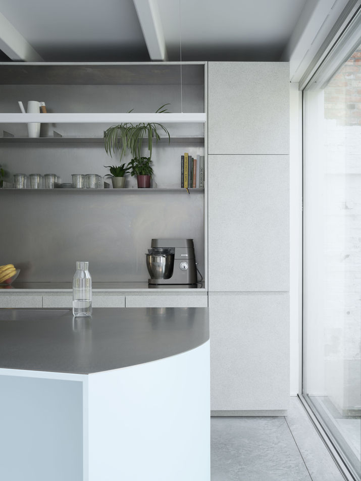 Bij de renovatie van deze neoklassieke rijwoning hebben we een aantal klassieke ruimtelijke oplossingen uitgedaagd. Dwars geplaatste draagbalken en strategisch geplaatste kolommen herdefiniëren de indeling en versterken het gevoel van breedte en licht.